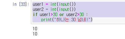 if 조건1 or 조건2(둘 중 하나라도 참이면)