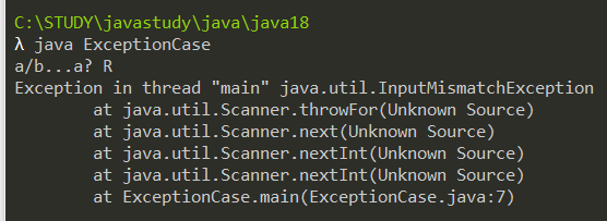 ->클래스 scanner를 통한 값의 입력에서의 오류 상황을 의미하는 예외 클래스
