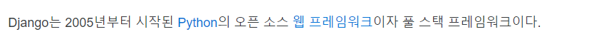 django 에서는 Spring 에서 오라클이나 MYSQL을 통해 데이터를 다루는 것과는 달리 DB를 다룰수 있는 ORM을 제공한다고 한다.