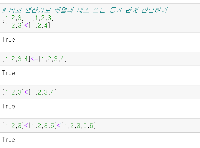 비교 연산자로 배열의 대소 또는 등가 관계 판단하기
